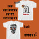 This fun Halloween children's shirt has a creepy tombstone, a bat flying against a blood red full moon, a skull with fire eyes, and a hairy black widow spider. RIP is carved into the tombstone. Under the creepy scene, there is a template for your child's name. On the back of the t-shirt, there is another horrifying human skull.