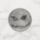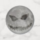 Scary Halloween illustration featuring a spooky landscape by night with the full moon having a jack-o-lantern face over a creepy dark old house.