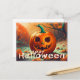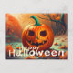 Scary Looking Orange Pumpkin with Face, Halloween Holiday Postcard