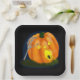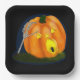 A scared pumpkin is frightened of a boney zombie hand grabbing him down into the ground! A spider runs quickly from is mouth BOO! Scary!