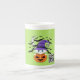 Scary Pumpkin with a White Kitty and Witches Hat Bone China Mug