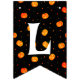 A spooky and funny Halloween pumpkins, scary jack-o'-lantern and colourful polka dots seamless pattern, creepy spider on black orange stripes and Happy Halloween script white letters on black. Easy to decorate Your front porch with this beautiful and colourful Halloween party buntings. You can change the text and colour by clicking personalise options.