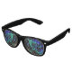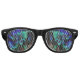 Fun scary skulls in neon electric blue, teal and red against black fill the lenses. Designed for Halloween, but cool fun for all year long.