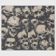 Disturbing image of a pile of scattered skulls in bone white and black pattern