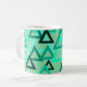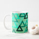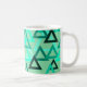 This mug design has scattered triangles of multiple sizes in shades of seafoam green.