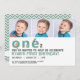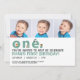 This invitation fits 3 photos. For best results, use all three photos sized to W: 2.29 x H: 1.98. The age cannot be changed, but all other information is editable. Available with jade as the background colour and for ages two as well in my Zazzle store.