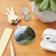 Tranquil scenic setting with a park bench over looking stunning alpine scenery.