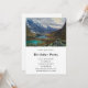 Birthday invitation with a beautiful nature photograph. Featuring snow capped alpine mountains and tranquil ponds nestled inside the valley of these majestic mountains.