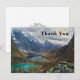 Thank you card with a beautiful nature photograph. Featuring snow capped alpine mountains and tranquil ponds nestled inside the valley of these majestic mountains.