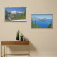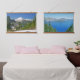 This set of tapestries shows two magnificent scenes from the Cascade Mountains. One shows a photo of Mount Baker, a volcano in Washington's North Cascades, overlooking an alpine landscape. Below the mountain, a tiny alpine lake peeks from behind some evergreen trees. Snow covers Mt. Baker's peak and lies in a field in the foreground. In the other photo, the vast waters of Crater Lake spread out beneath a blue sky. This iconic scene from Oregon's Cascade Mountains shows the famous blue water, the cone of Wizard Island, and the steep walls of the caldera. Enjoy these beautiful landscapes from the Pacific Northwest.