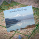 Travel postcard featuring the photo image of a scenic view of snow covered Mount Hood, Oregon and its reflection in the Columbia River. Select from matte or glossy style card.