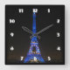 A scenic view from Paris, France. The famous landmark, the eiffel tower, seen at night lit up by bright blue lights.