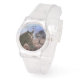 The original horse portrait on this unique, customisable wrist watch, is an original painting of a beautiful chestnut mare, The chestnut horse is a great symbol for all things to do with the horses, this watch will look good on any wrist, male or female and will make a unique gift for people working with animals, whether it be a horse vet or all animal veterinary treatment, blacksmith farrier, training or working with horse rescue. The horse portrait is set against an original stylised watercolor landscape image. This is a customisable watch, you can personalise it with your own text.