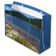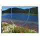Express your gifting style with this large style gift bag with blue trim and features a photo image of a scenic lake with colourful wildflowers growing along the shoreline. Select your gift bag style.