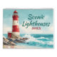 Journey across rugged coastlines and tranquil shores with Scenic Lighthouses, a breathtaking calendar that captures the timeless beauty of these iconic maritime sentinels. Each month showcases a different lighthouse scene—from misty dawns and stormy skies to golden sunsets and moonlit nights—highlighting their historic charm and coastal majesty. Perfect for lovers of the sea, nautical history, or serene landscapes, this calendar brings the quiet strength and guiding light of lighthouses into your everyday view.