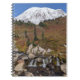 A personal sized, spiral bound notebook that features a scenic photo image of snow capped Mount Rainier and Edith Creek as viewed from within Mount Rainier National Park, Washington. Use as a journal or to keep important notes.