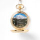 Classic and stylish pocket watch with white numerals that features a scenic landscape photo image of snow capped Mount Rainier, the tallest mountain in Washington State. Select from several styles of watches.