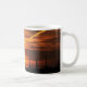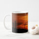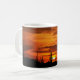 Scenic mug design features photograph of cacti silhouettes against an orange sky at sundown in the Arizona desert near Saguaro National Monument.