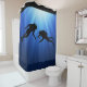 Beautiful scenic shower curtain in a graphic design depicting and underwater scene with scuba divers and sunlight shining through the ocean. Designed for anyone who loves or participates in scuba diving.