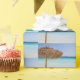 Scenic Tropical Beach with Straw Umbrella Pattern Wrapping Paper