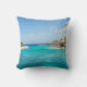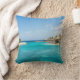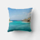 A pillow with a beautiful photo featuring a tropical beach resort.