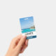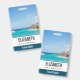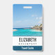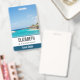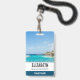 Personalised name badge with a beautiful photo featuring a tropical beach resort.