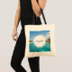 A tote bag with a beautiful photo featuring a tropical beach resort.