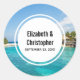 Scenic Tropical Beach with Thatched Huts Wedding Classic Round Sticker