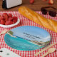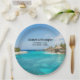 Wedding paper plates with a beautiful photo featuring a tropical beach resort.