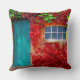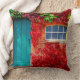 Scenic Turquoise Door with Vivid Autumn Leaves Cushion