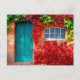Scenic Turquoise Door with Vivid Autumn Leaves Postcard