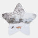 This original little snow scene landscape painting shows two mixed breed dogs, having fun in the fresh carpet of crisp snow. The brown and black dog is accompanied by his friend a german shepherd/ golden labrador cross breed dog, the two of them are gazing across the snow covered landscape to the rooftops below the hill. The two pals have just been playing in the snow covered trees and are taking a little breather from their doggy fun and games. This original picture of two dogs in the snow makes a great festive star shaped Christmas sticker. The watercolour snow landscape painting is titled "Fun In The Snow" The scene is of a golf course in South Woodford on the edge of East London England.