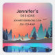 Business stickers with a beautiful graphic design featuring a peaceful lake with deer. and tall pine trees being reflected in the water. Stars hover overhead.
