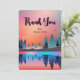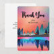 Flat thank You card with a beautiful graphic design featuring a peaceful lake with deer. and tall pine trees being reflected in the water. Stars hover overhead.