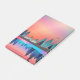 Sticky notes with a beautiful graphic design featuring a peaceful lake with deer. and tall pine trees being reflected in the water. Stars hover overhead.