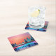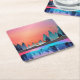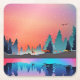 Paper coasters with a beautiful graphic design featuring a peaceful lake with deer. and tall pine trees being reflected in the water. Stars hover overhead.
