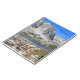 Beautiful Lake Marie lies nestled at the base of majestic granite mountain peaks high in the Snowy Range of the Rocky Mountains in southeastern Wyoming. This photograph was taken in early autumn before new snow, and shows the huge peaks silhouetted against a bright blue early fall sky. The forest of pine and spruce trees runs down to the lake at the distant shore. In the foreground, the rocks make a pretty frame. The text is customisable. Photograph by Debra Mickelson.