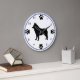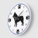 A dog lover clock featuring the silhouette of a Schipperke, with paw prints marking the quarter hour numbers.