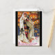 Surprise your friends with a beautiful vintage Halloween card featuring a dressed up woman and funny pumpkins in the back, painted by the American illustrator Samuel Loren Schmucker.