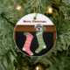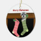 Merry Christmas stocking hung by fireplace with Miniature Schnauzer. www.Schnauzers-Rule.com