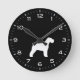 Schnauzer Dog Silhouette Black and White Round Clock