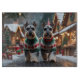 This festive design captures the joyful spirit of the holiday season, featuring an adorable dogs.Nestled in a winter wonderland, complete with a decorated Christmas tree, and beautifully wrapped presents. Snowflakes gently fall, adding a magical touch to the scene, while the vibrant colours of the holiday decorations create a warm and cheerful atmosphere.