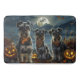 Unleash the spooky spirit with this eerie Halloween design featuring a pack of dogs under a dark, moonlit sky, surrounded by flying bats and glowing pumpkins. Perfect for those who love a touch of frightful fun with their furry friends!