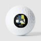 Schnauzer / Miniature / Standard / Giant dog silhouette grid abstract pattern yellow and blue with tricolour background in a black circle. Personalize with your three initials in white under the dog shape. Perfect for the dog lover in your life or the dad who loves golfing, these golf balls are the perfect way to show off your passion.