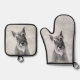 Schnauzer Painting Giant Cropped Original Dog Art Oven Mitt & Pot Holder Set