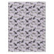 Cute Schnauzer dogs in black, salt and pepper and black and silver coats sit, stand and rollover with scattered dog bones and paw prints on a light purple background.