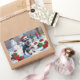 Schnauzer Running in Snow with Christmas Hat Rectangular Sticker