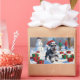 A spirited Schnauzer runs happily through the snowy winter scene, wearing a festive red Christmas hat. This lively design highlights the breed’s distinctive beard, wiry coat, and loyal personality while capturing the warmth and joy of the holiday season. A cheerful winter moment full of festive charm.