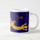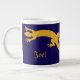 interlinked golden geckoes in silhouette. Everyone needs a gecko or two. Unique Inkshed design. Golden yellow geckoes, dark purple/blue mug. Edit the name to personalize, or just delete it for a simple, stylish gift.