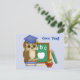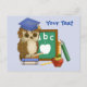 Cute big eyed owl in mortar with apple, books and other back to school tools. Customise cover text area.